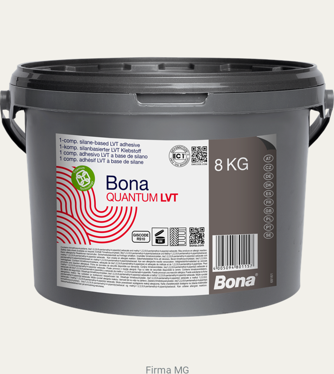 Bona Quantum LVT jest klejem silanowym o bardzo niskiej emisji związków lotnych. Przeznaczony do montażu szerokiej gamy wykładzin podłogowych LVT i wielowarstwowych podłóg modułowych zgodnie z EN 16511***. Klej różni się od konwencjonalnych klejów dyspersyjnych bardzo wysoką przyczepnością początkową. Bona Quantum LVT może być stosowany w obszarach o zwiększonej ekspozycji na wilgoć i jest odporny na zwiększoną zawartość wilgotności resztkowej w podłożu.